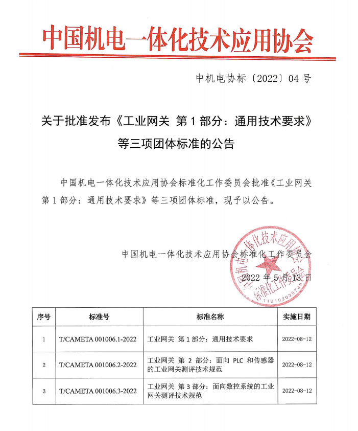 2022年5月13日,巅峰国际智通核心参编的工业网关标准,已正式顺利获得审批!将于2022年8月12日正式实施!